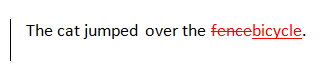 A user checks a document in to Content Manager that contains the phrase The cat jumped over the bicycle that was modified from The cat jumped over the fence and Track Changes is active - see example 2 and 3 below.