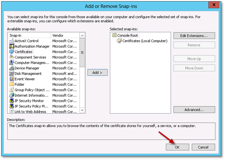 7. Click OK on the Add or Remove Snap-ins dialog.
