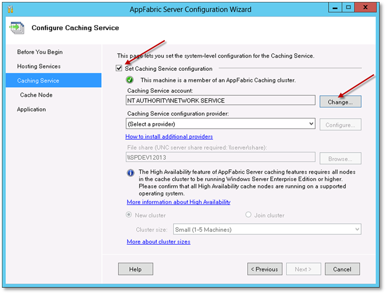 • Create AppFabric Caching Service configuration database