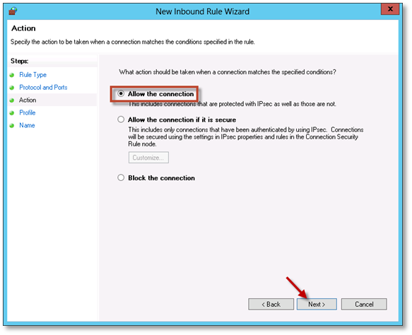 6. Accept the default option Allow the connection and click Next.