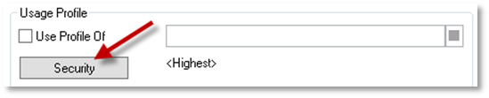 In the Profile tab, to provide a security level of <Highest> to a Location, click Security and in the resulting dialog, select the Highest level. Click OK to return to the Properties dialog.