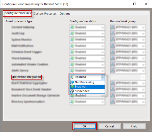 You must enable event processing for each dataset used for managing SharePoint content. Using “Content Manager Enterprise Studio”, for each dataset perform the following steps:
