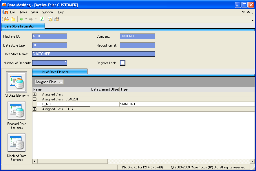 This section describes the fields and items listed in the Data Store Information area as shown below: