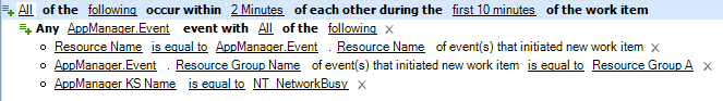 Exchange Serversresource group, you can append additional matching events to the existing work item during its first 10 minutes by configuring the expression as follows: