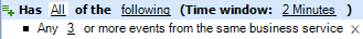 This expression matches a minimum number of non-specified events from the same business service within the specified time window.