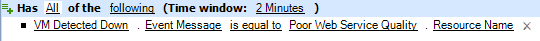 VM Detected Downnamed event, you can append additional matching events to the existing work item by configuring the expression as follows: