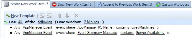 If events match the rules on this tab, the trigger appends the events to an existing work item. For more information about appending events to a work item, see Understanding Appending Expressions.