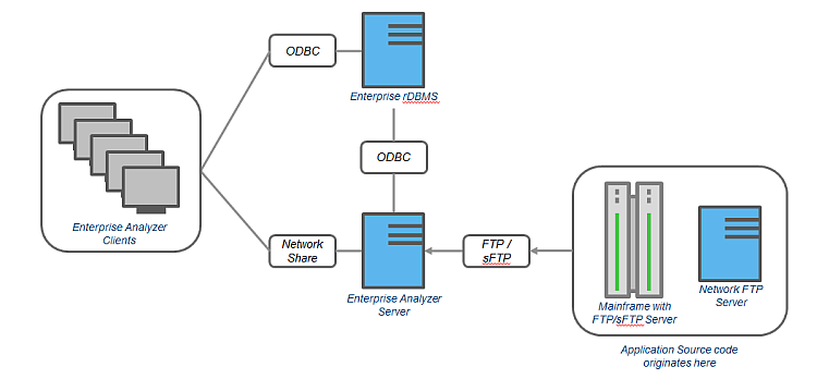 Enterprise Analyzer multiuser environment. The role each machine performs and its key relationships are described below. Keep in mind that the