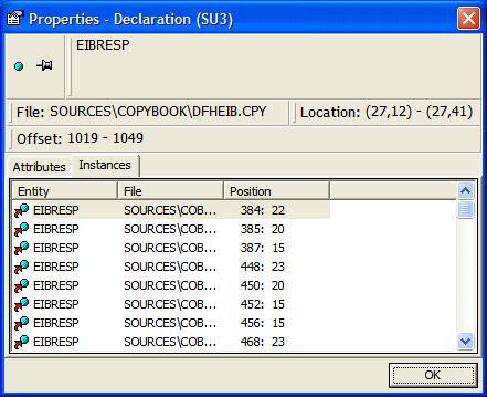 If you are interested in investigating other uses of EIBRESP in the program, you can navigate to the declaration of the variable in the construct model. Select EIBRESP in the Context pane and choose Edit > Declaration.