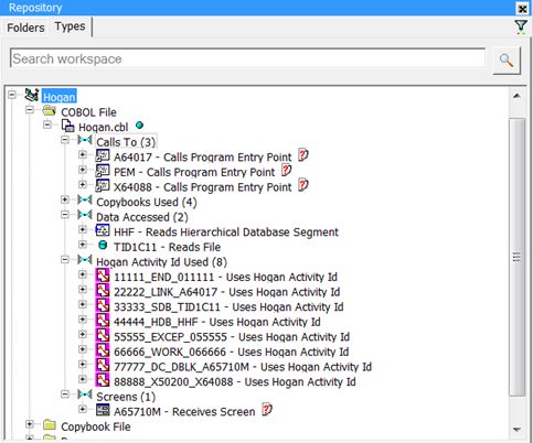 You can use HoganExample.zip supplied in the Docs folder of your Enterprise Analyzer installation directory to validate that your project is set up for supporting Hogan correctly. You need to extract the files, point to the Hogan configuration files location, change the variables value option to 5000 and execute the analysis. After the verification you should be able to see something similar to the screenshot below: