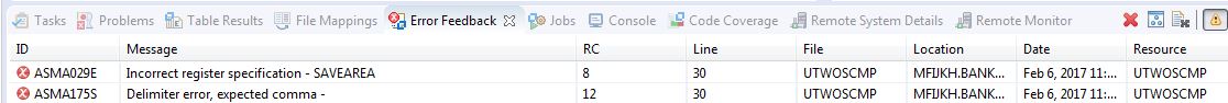 The code is compiled on the mainframe, using the mainframe Assembler. If any syntax errors are detected, they are displayed