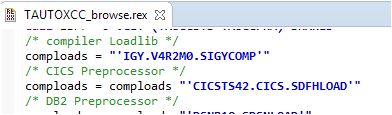 1. This sample application uses the REXX procedures TAUTOXCC for compiling COBOL batch and CICS programs, and the REXX procedure TAUTOXCA for compiling Assembler programs. To point to the right compiler load libraries and the CICS pre-processor, both REXX procedures have to be customized, which should have been already done after the z/Server installation. For details see ISPF Exits in the Workflow Manager Modeling Guide. If this is not customized, the remote syntax check action used in this demo will not work properly. If you are using the PL/I sample as well, the REXX procedure TAUTOXCP is used to compile PL/I sources.