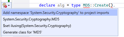 If the IDE does not have information about a type, it displays a pop-up message with an error message COBCH0845 and a few suggestions about how to fix it. Use this quick action to add a $set ilusing statement at the start of your program that imports the namespace.