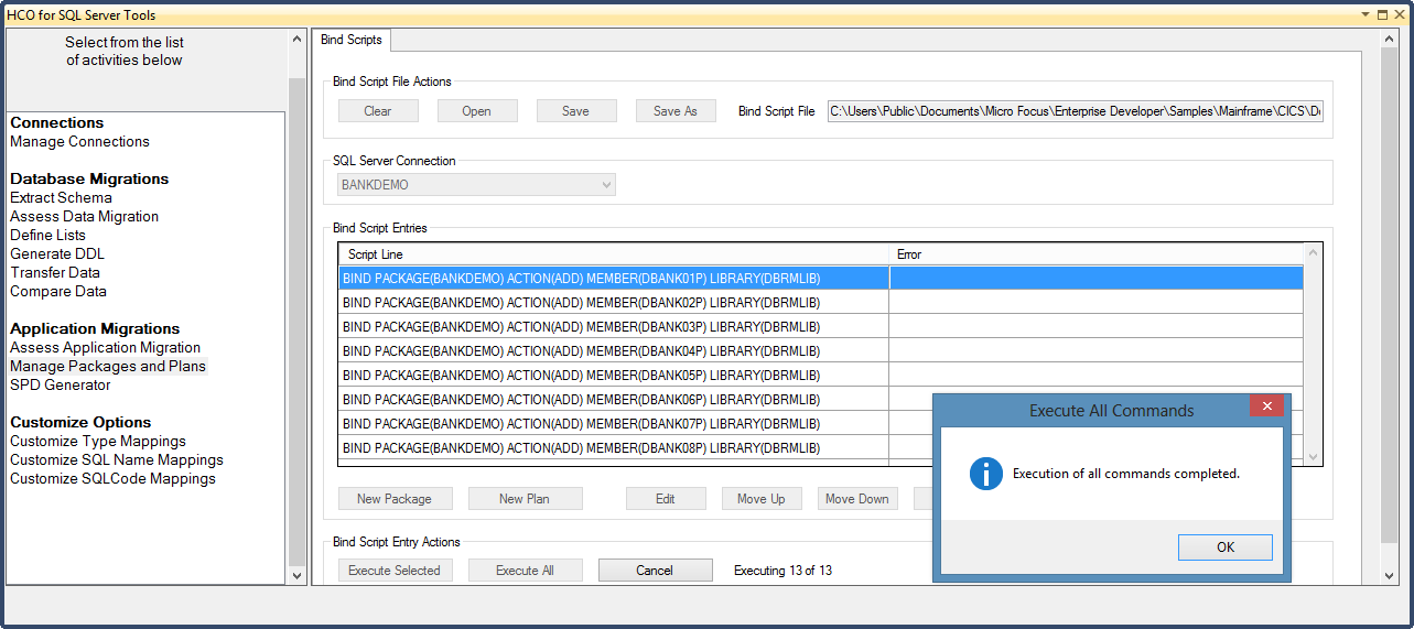 - Execute the SQL. This will create the required tables and pre-load them with the BankDemo data.