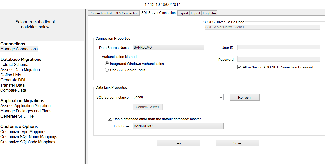 - Select BANKDEMO from the SQL Server Connection dropdown.