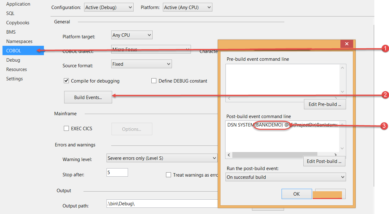 This will bind the binaries generated when you built the project to the BANKDEMO database.