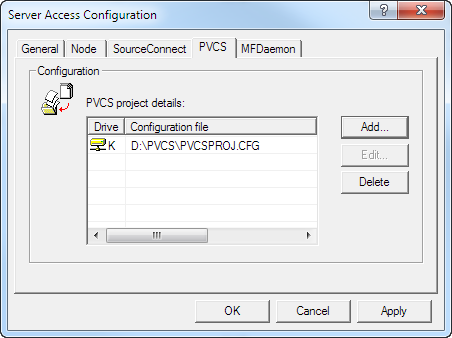 To access PVCS, you would specify the fully qualified location of the PVCS configuration file to be used for your environment. You must be using PVCS version 5.2 or greater. Optionally, a promotion group or version label can be specified as well.