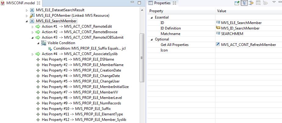 The icon is derived from the icon used in the MVS Explorer for a PO data set member. All actions have modeled enabled or visible conditions that have rules applied: