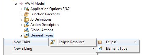 To define a new linked element type in your AWM model, you have to add the corresponding function package to your model. Then create a new element type by selecting the linked element type from the function package.