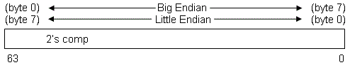 Fixed Binary Unsigned (33 <= p <= 64) is a 64-bit, unsigned, 2's complement binary integer.