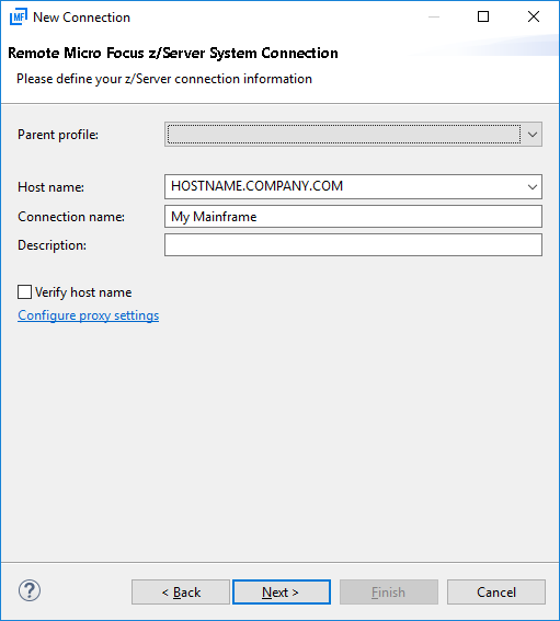 Enter the details of the mainframe that has z/Server and MFA server installed.