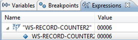 You can use the COBOL Source Information (CSI) functionality and its Quick Browse dialog to obtain information about your program when you are debugging it. This example shows details for data items starting WS-, such as the name, definition, and amount of times each item occurs in the program.