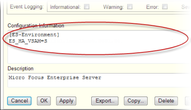 This configuration provides a Fileshare server accessible to users within the Enterprise Server region, by prefixing ES- before the region's name; for example, if the region is called FSsvr, the name by which to access it is ES-FSsvr. For external users to access the iFileshare server, see Additional iFileshare Configuration.