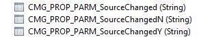 The Property CMG_PROP_PARM_SourceChangedN is defined with default value N. The Property CMG_PROP_PARM_SourceChangedY is defined with default value Y. The AWM tool "Return Property Value" can be used to set or reset the CMG_PROP_PARM_SourceChanged by the value of the property CMG_PROP_PARM_SourceChangedN or CMG_PROP_PARM_SourceChangedY, respectively:
