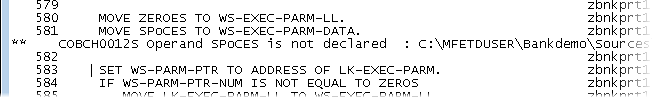 8. Check the errors in the listing file, ZBNKPRT.lst as follows: