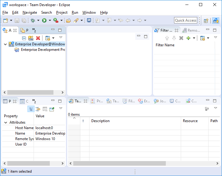 Open Team Developer Perspective to close the Welcome page and see the main Eclipse window.