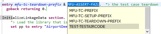 4. Now jump to the MFU-TC-PREFIX & TEST-TESTAIRCODE entry point, and add the following lines of code before the first call statement: