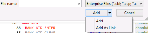 By default, the file type filter is set to Enterprise Files (*.cbl; *.cpy; *.cob).
