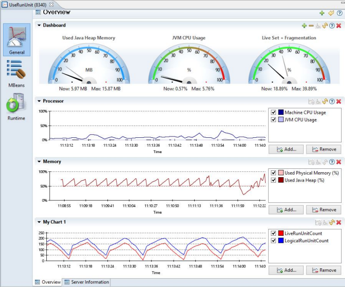 An MBean provides the following two attributes that enable a visual indication of how many RunUnits are live: