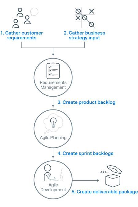 At the end of the project you return to the requirements gathering stage to create the new product backlog.