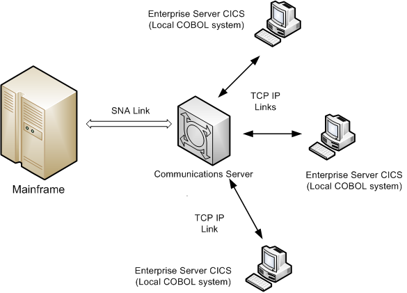 - One or more client PCs or UNIX machines running communications server SNA client software, and Enterprise Server COBOL systems.