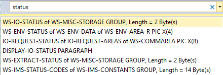 Locate Definition, in the COBOL toolbar and start typing a search term: