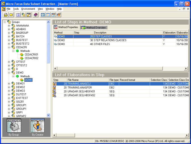 This section describes each area of the Data Subset Extraction - [Master Form] window.
