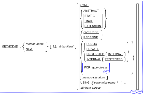 Method SignatureThe method signature enables you to specify passing parameters and returning items within the header of certain elements. You must omit the procedure division header within the method if you use this signature.