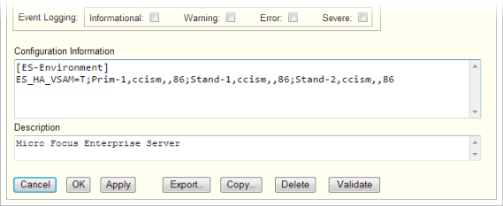 ES_HA_VSAM=<status>;<APPLID1-info>[;<APPLID2-info>;<APPLID3-info>...]