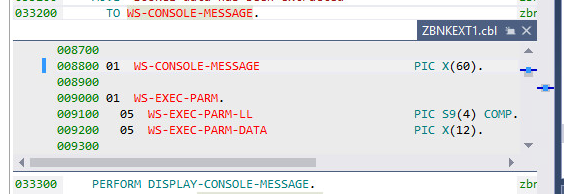 This highlights all occurrences of the variable in the editor and opens the Rename widget. Note that any changes you make are applied the current project. Set Scope to Current COBOL Program.