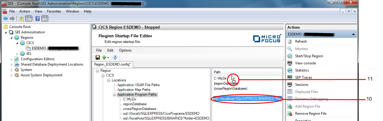 2. In the Results pane expand the Region node and select the Application Program Paths node. See 1 in the diagram below.