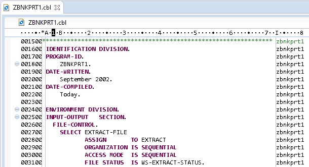 Within this edit session, use the knowledge gained during the earlier tutorials to explore and edit this COBOL program.