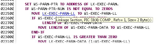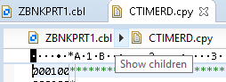 Click a copybook reference in the Copybook Dependency view to locate the associated COPY statement at the appropriate line in the source code.