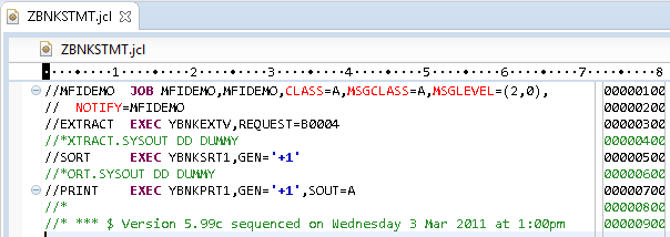 You are going to explore some of the COBOL editing features using the ZBNKPRT1.cbl program which produces a report from a sequential data file.