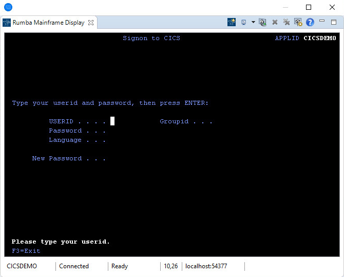 Follow the links below for details on how to use the embedded Rumba+ Desktop Mainframe Display view.