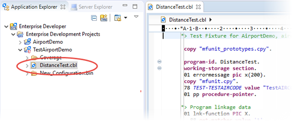 DistanceTest.cbl test fixture file is created within the TestAirportDemo unit test project.