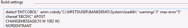 Notice that CICS Directives is set to CICSECM(). This has been set when you added the file to the project or performed a directives scan of the COBOL sources in your project.
