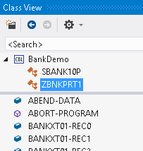 Locate Definition, in the COBOL toolbar and start typing a search term: