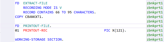 You are going to explore some of the COBOL editing features using the ZBNKPRT1.cbl program which produces a report from a sequential data file.