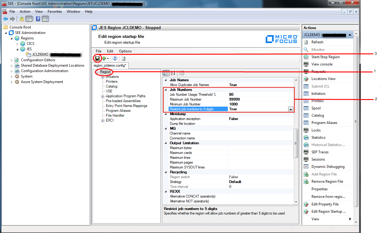 Job Numbers category in the properties window and select whether you want the region to use 5 or 7 digit job numbers by setting the